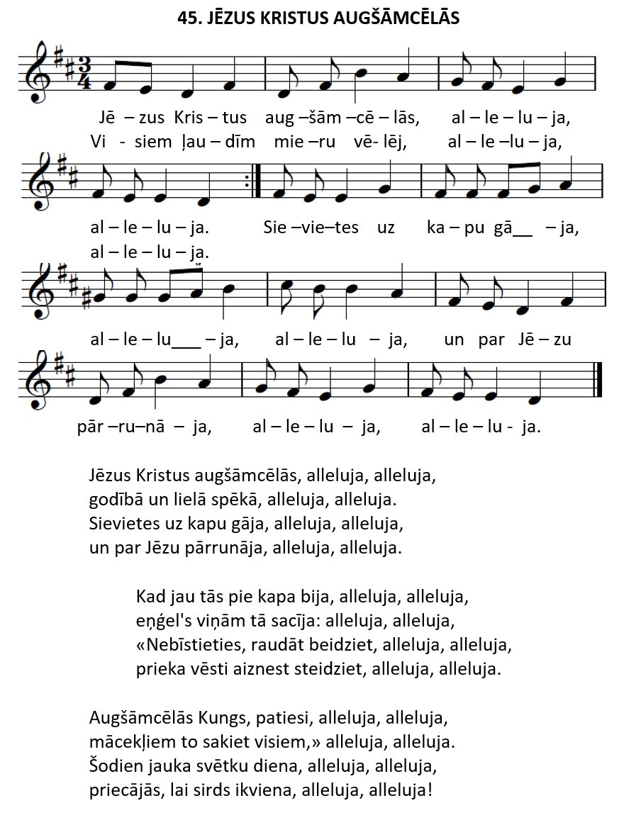 mācekļiem to sakiet visiem,» alleluja, alleluja.